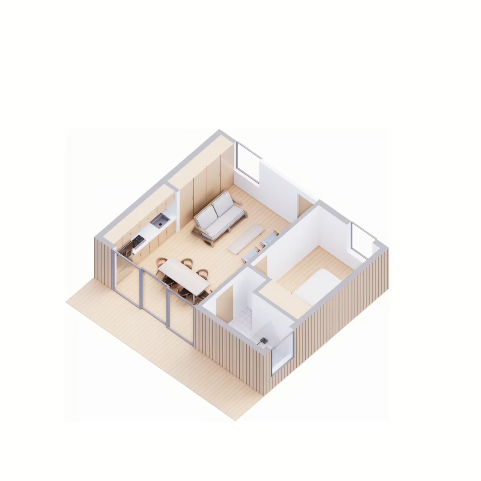 The Cascade is a 600 square foot, one-bedroom, one bathroom ADU.