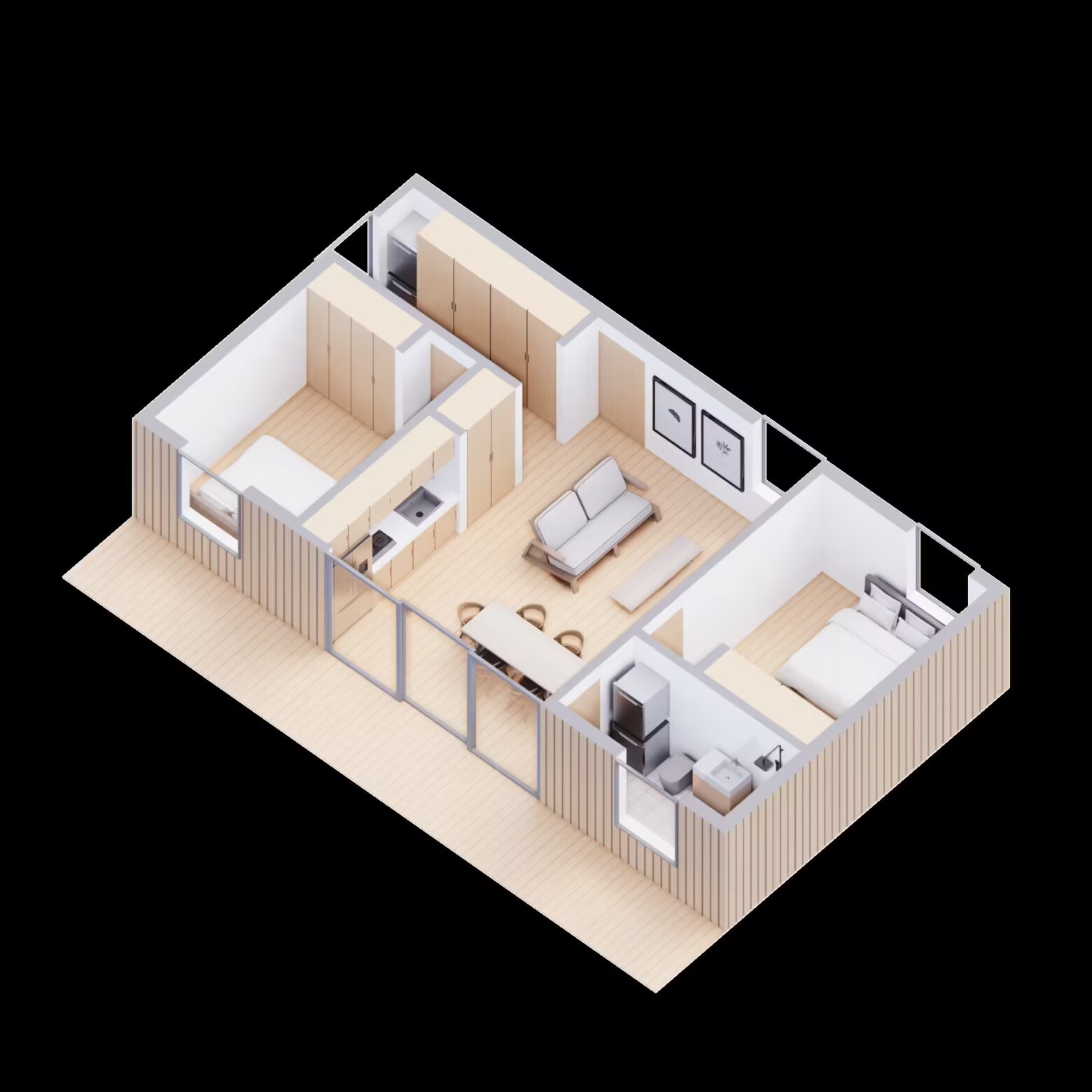 The Linn is a 750 square foot, two-bedroom, one bathroom ADU.