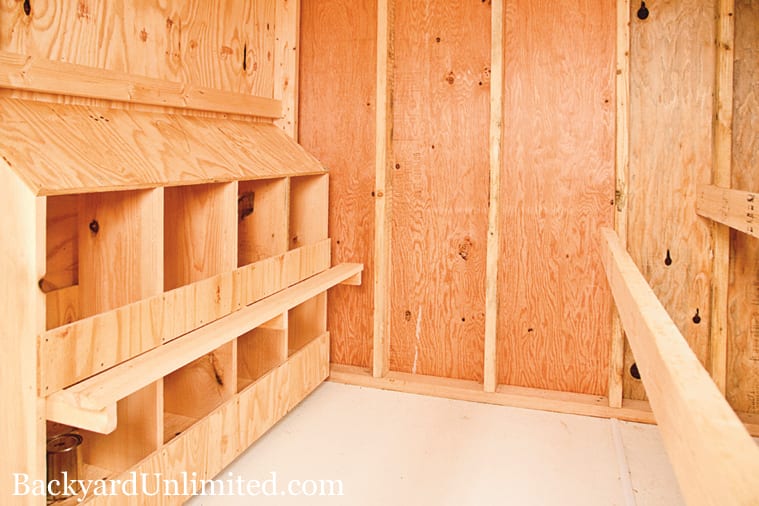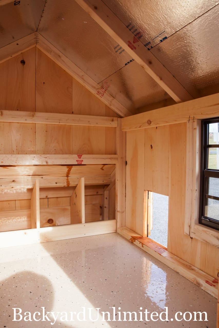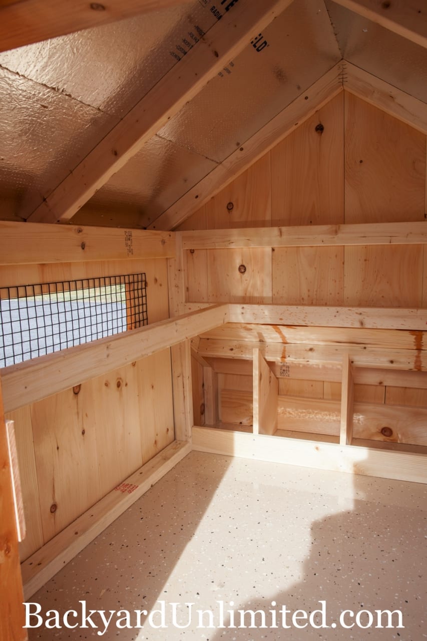 Interior of 4×4 A-Frame Chicken Coop with Board & Batten Siding and Epoxy Floor