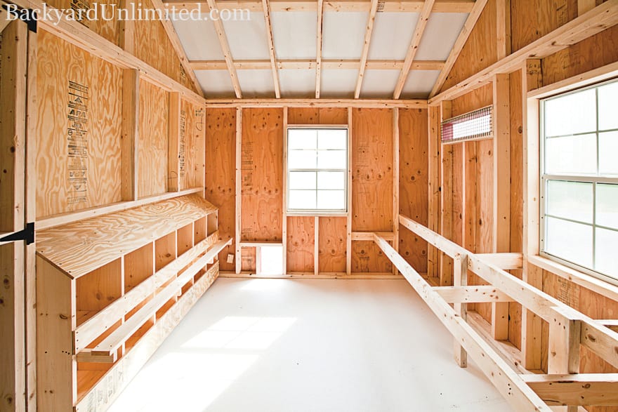 Interior of 12×24 A-Frame Chicken Area with Glassboard Floor and Metal Roof