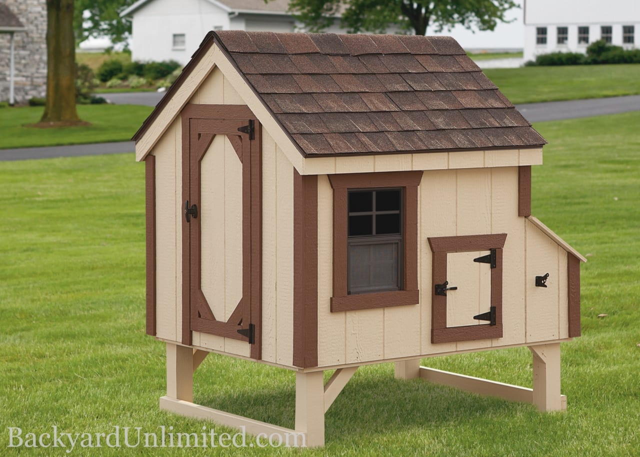 Our Quaker Chicken Coop is a great way to get started in raising a backyard flock. This prefab chicken coop features an attractive roof style that maximizes headroom. Each coop is built to order, so you can select the siding and roofing color. Customize your new coop by adding an attached run, removable litter tray, and wheels.