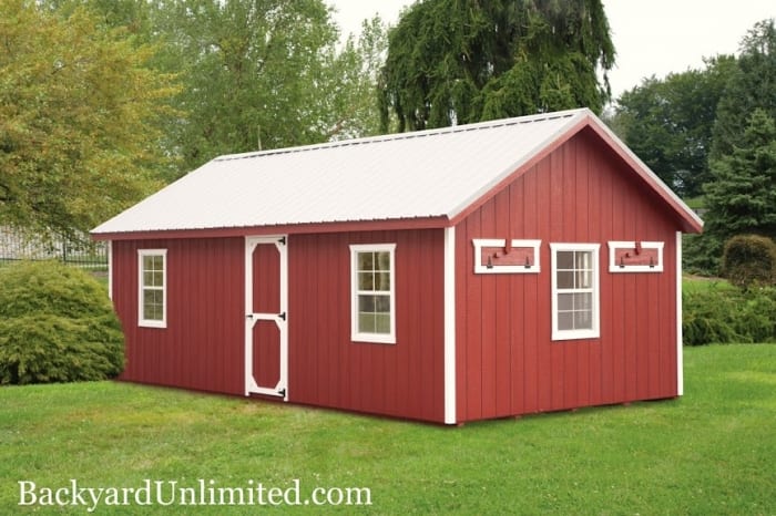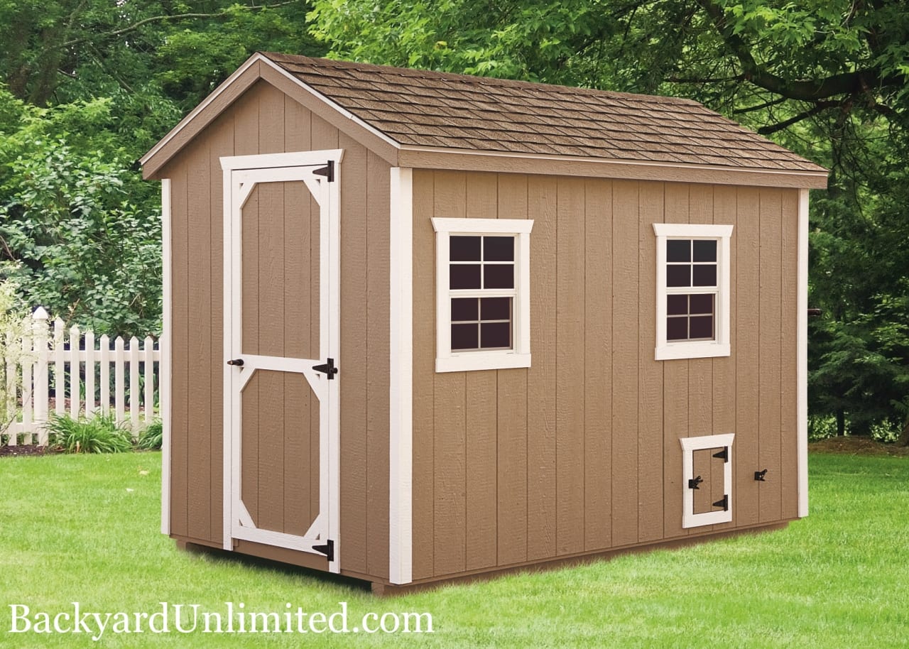 6’x10′ A-Frame Chicken Coop with feed room and tongue & groove siding with painted trim