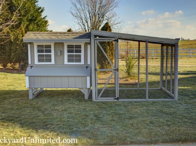 Our Dutch Chicken Coops are a popular choice for raising backyard chickens. The barn-style roof is not only a stylish choice preferred by many backyard poultry farmers; it is a practical choice that maximizes usable interior space. Like our other prefab chicken coops, the Dutch coop is built to your specifications, so you can choose the dimensions and colors.