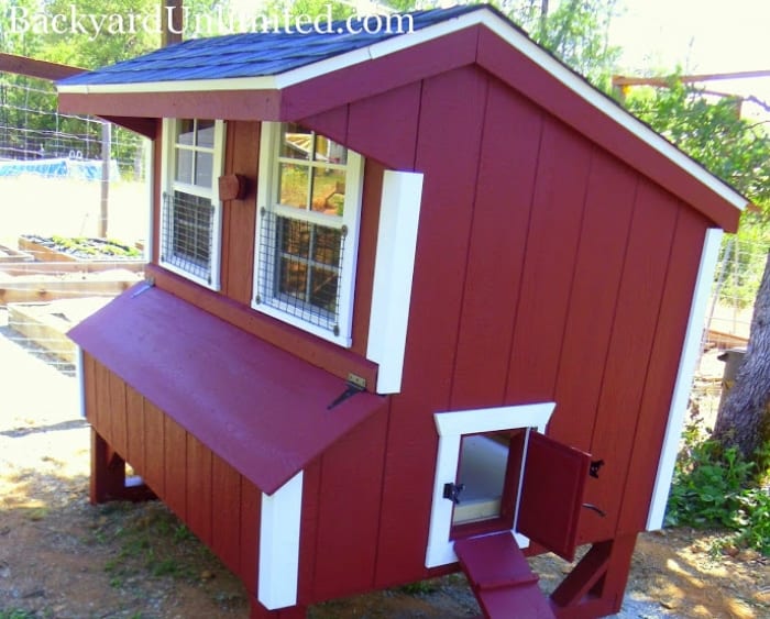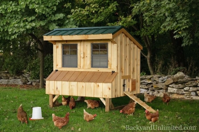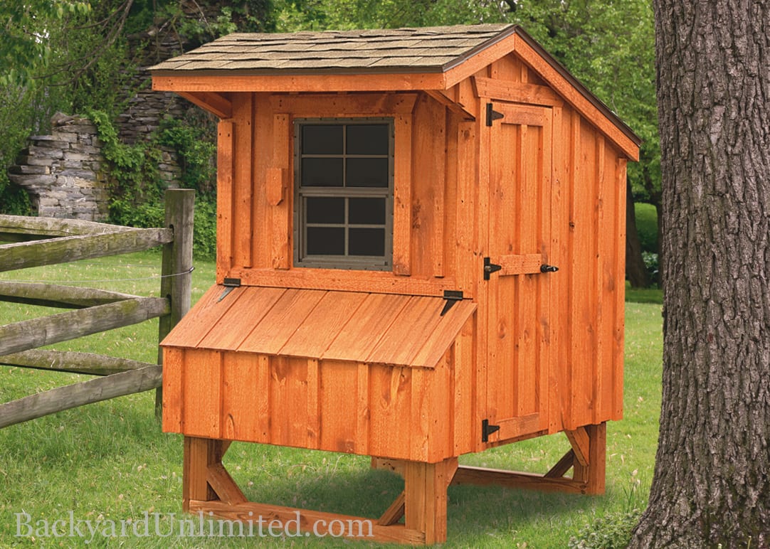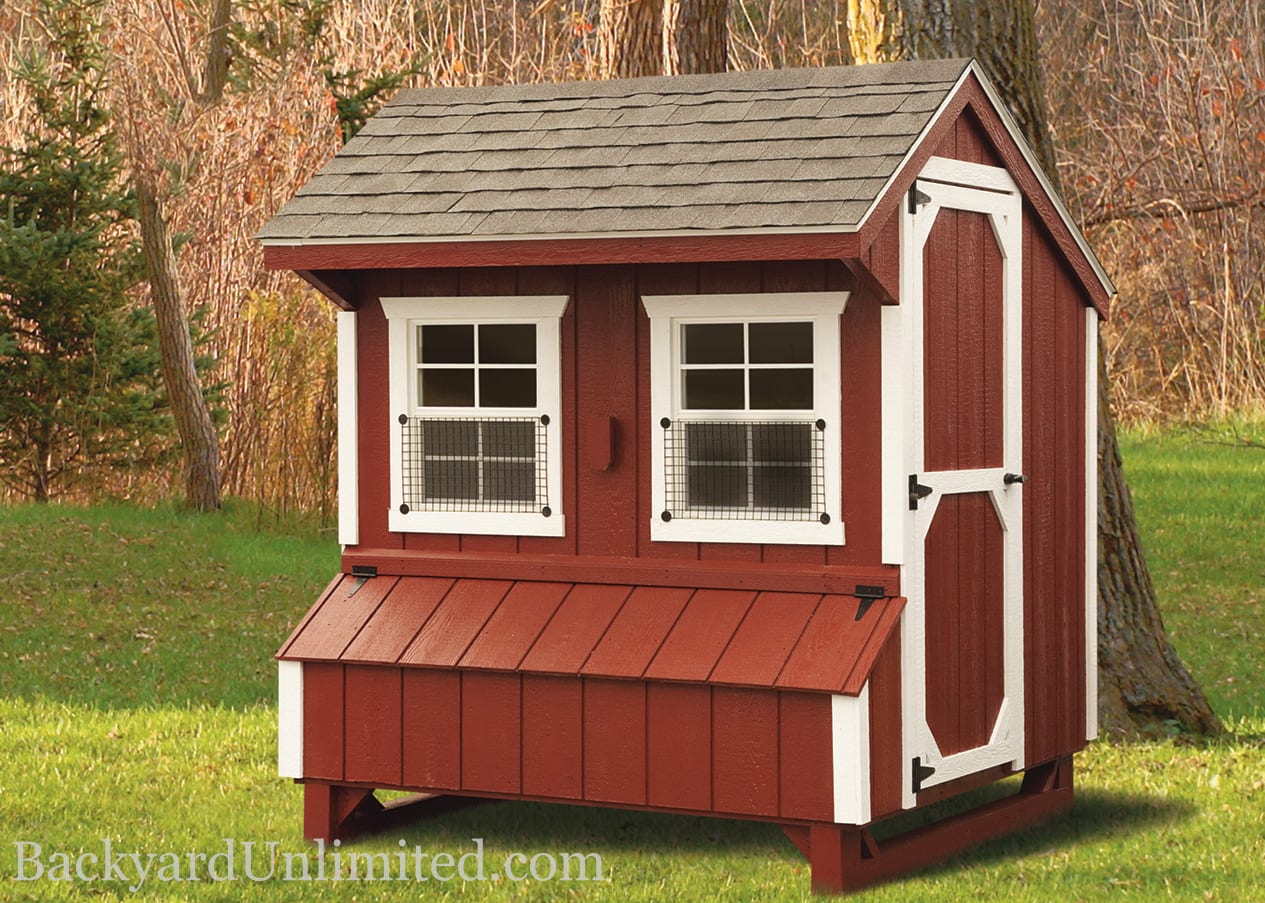 4×6 High Side Quaker Chicken Coop with metal roof and wire over windows