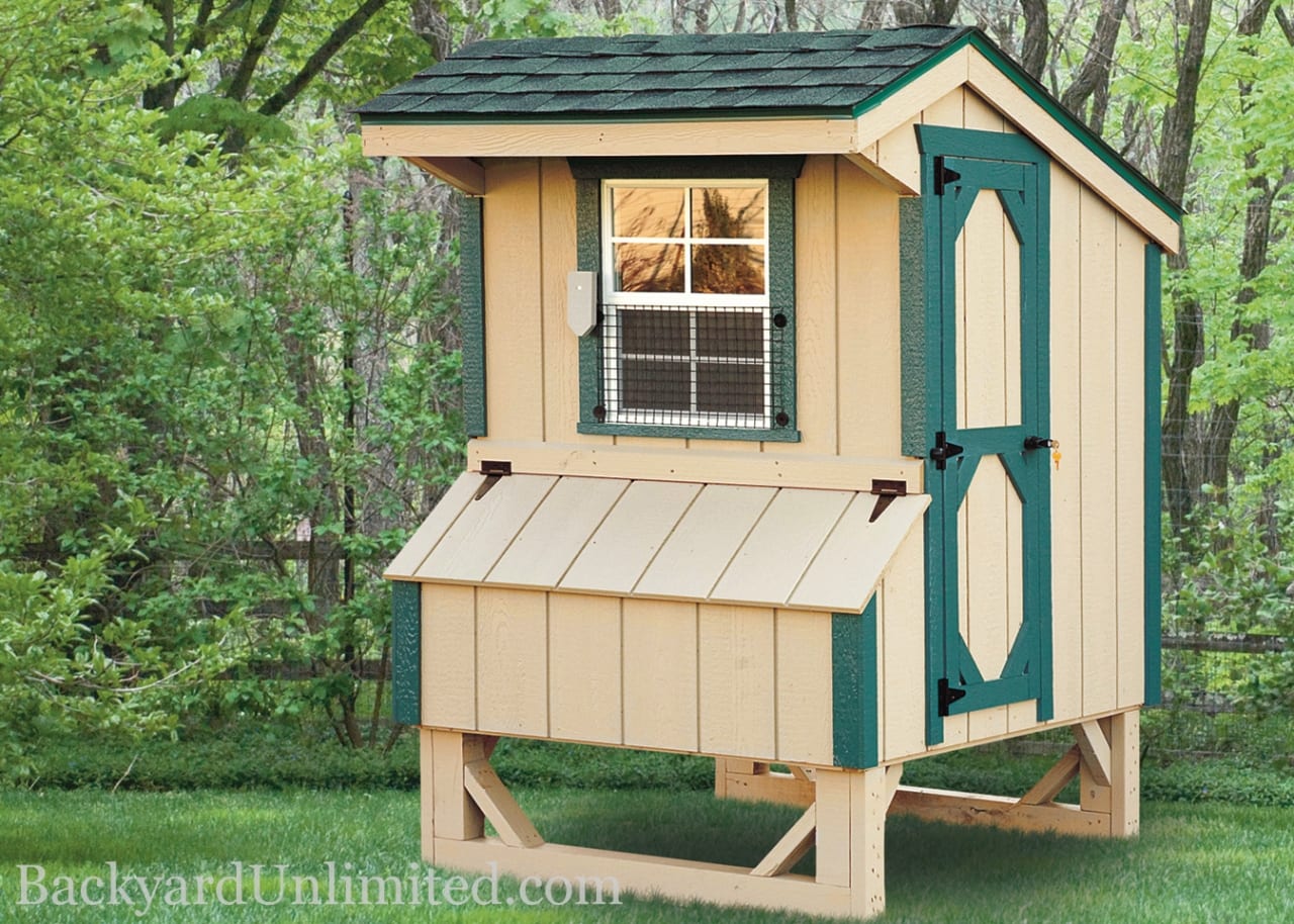 4×4 Quaker Chicken Coop with board & batten siding and painted trim
